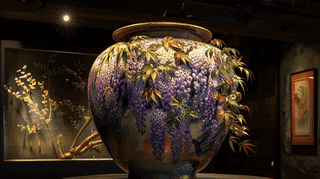 Experience the breathtaking beauty of Ninsei's color-decorated tea jar with wisteria design, a Natio...